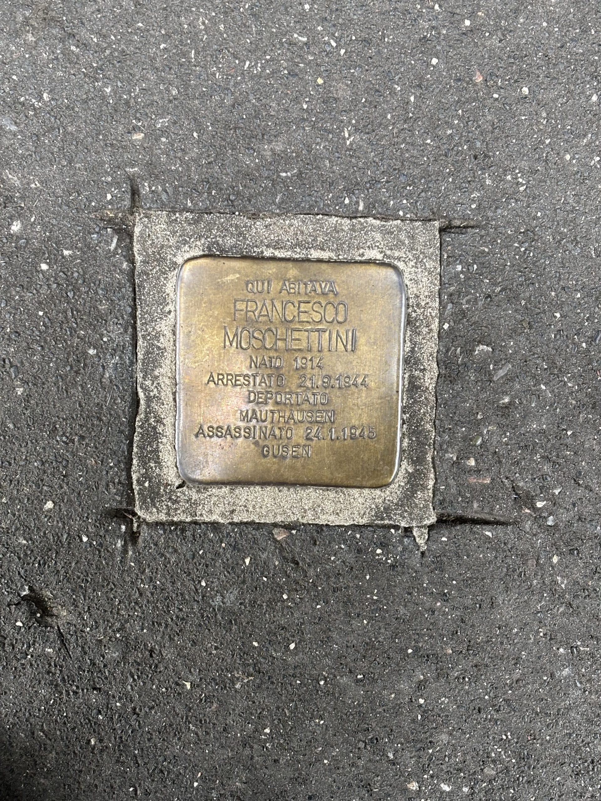 PIETRA D’INCIAMPO IN MEMORIA DI FRANCESCO MOSCHETTINI A MILANO
